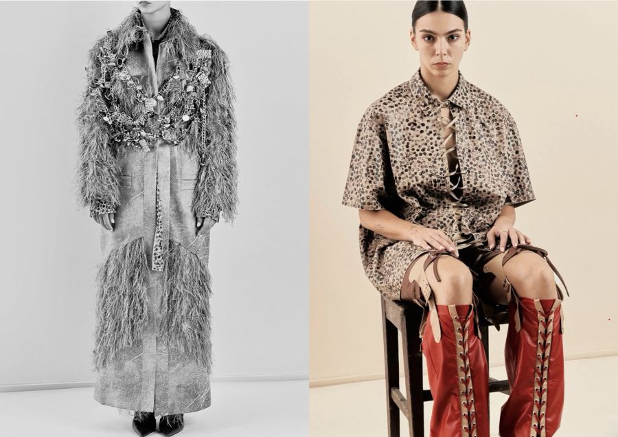 Antea Zimaj oblikuje kolekciju Herida kao osobni odgovor na djelo Fride Kahlo, prenoseći slikaričinu fizičku bol na tekstil. Elementi poput ortoza, čavala i medicinskih zavoja postaju radikalno oblikovani odjevni predmeti, dok upotreba materijala bogate teksture evocira prepoznatljive motive umjetničinih portreta. Kolekcija dokazuje kako fizička patnja može biti snažan pokretač stvaralaštva u suvremenoj modnoj praksi.